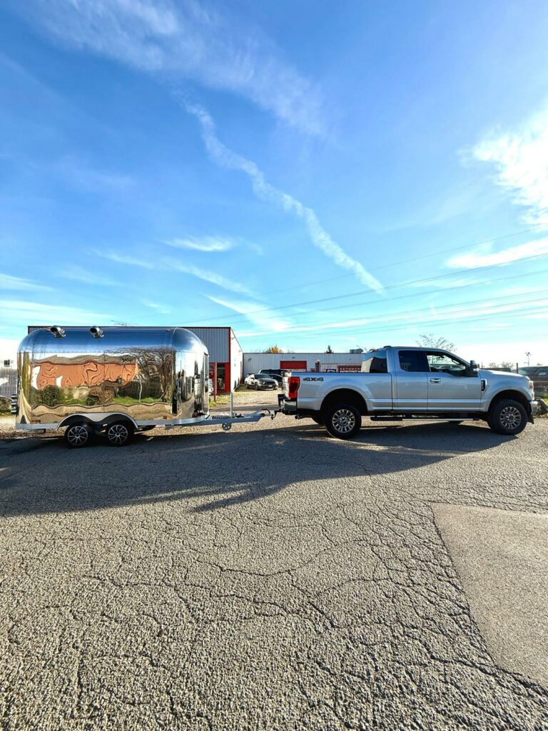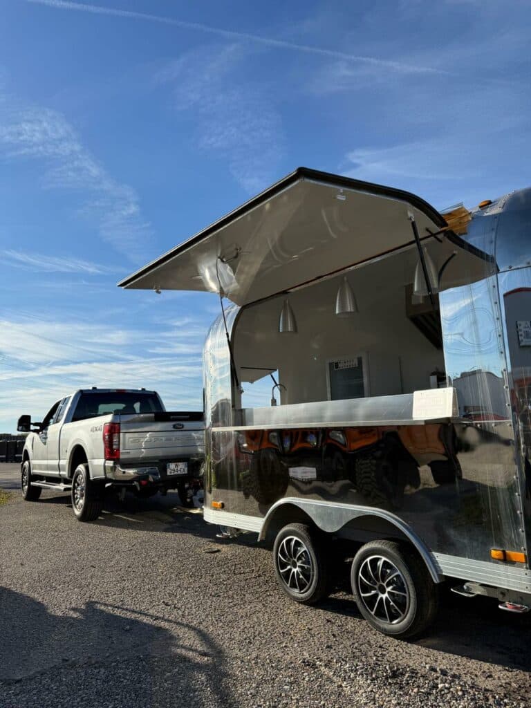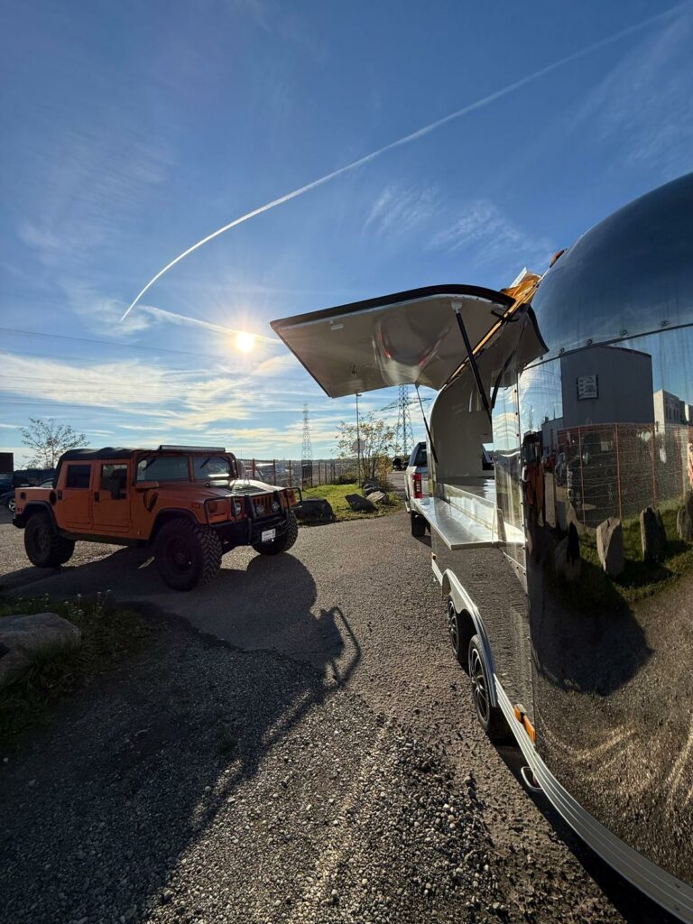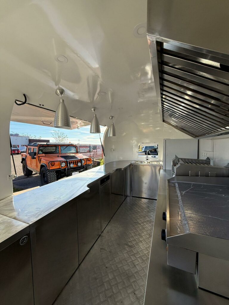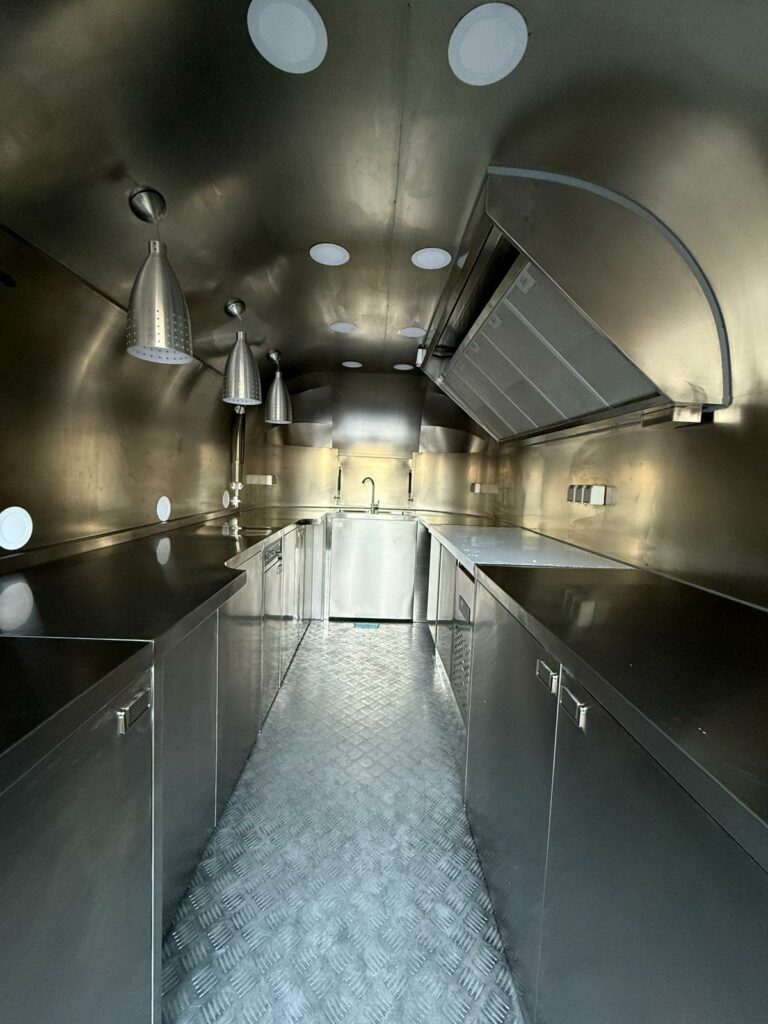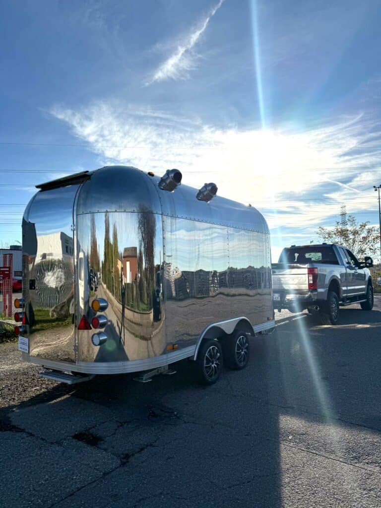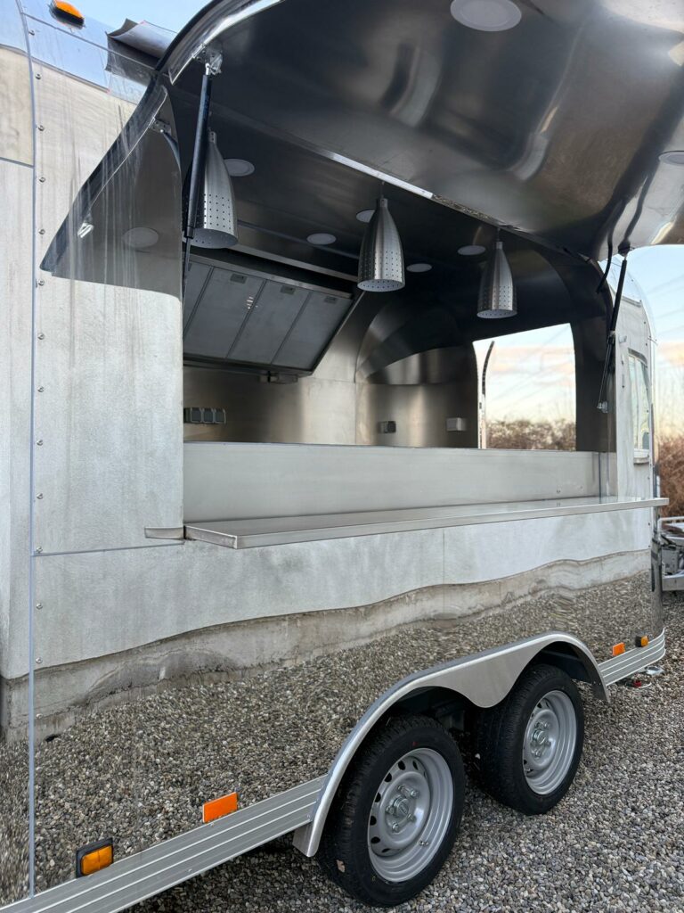 Magnifique Siristar Silverstar, food truck iconique au design aluminium poli intemporel.