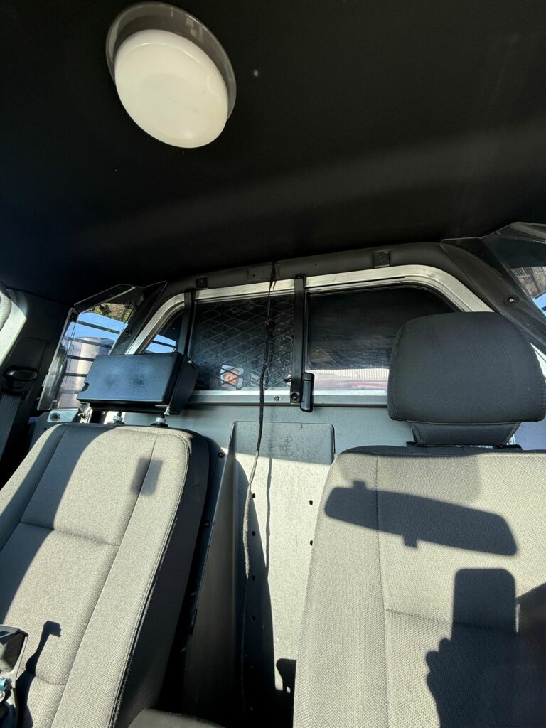 - Autres équipements : Equipé avec barre lumineuse rouge/bleue et feux à LED, double cloison, console centrale et sirène Police Interceptor original US